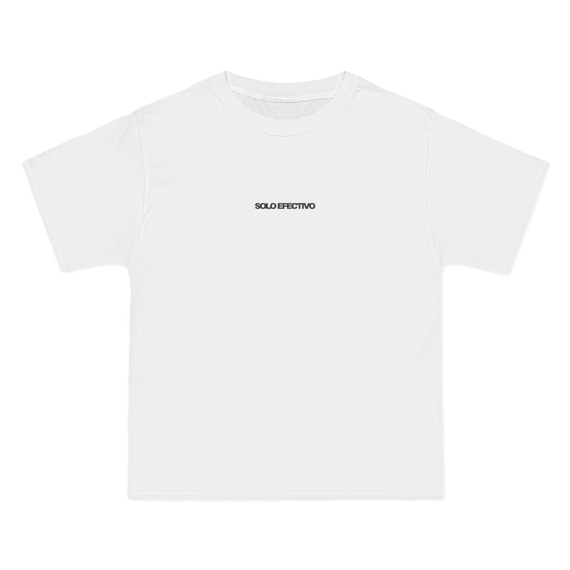 A relaxed, midweight tee designed for quiet confidence. This 100% cotton (color-dependent) shirt drapes casually while holding its shape—thanks to taped shoulders and a lay-flat collar—so the subtle SOLO EFECTIVO print reads clear and steady through wash after wash. The fabric’s smooth surface makes the minimalist front-and-back lettering pop without feeling loud. Wear it on slow mornings, city walks, or nights out when you want a low-key statement that leans refined and unhurried.